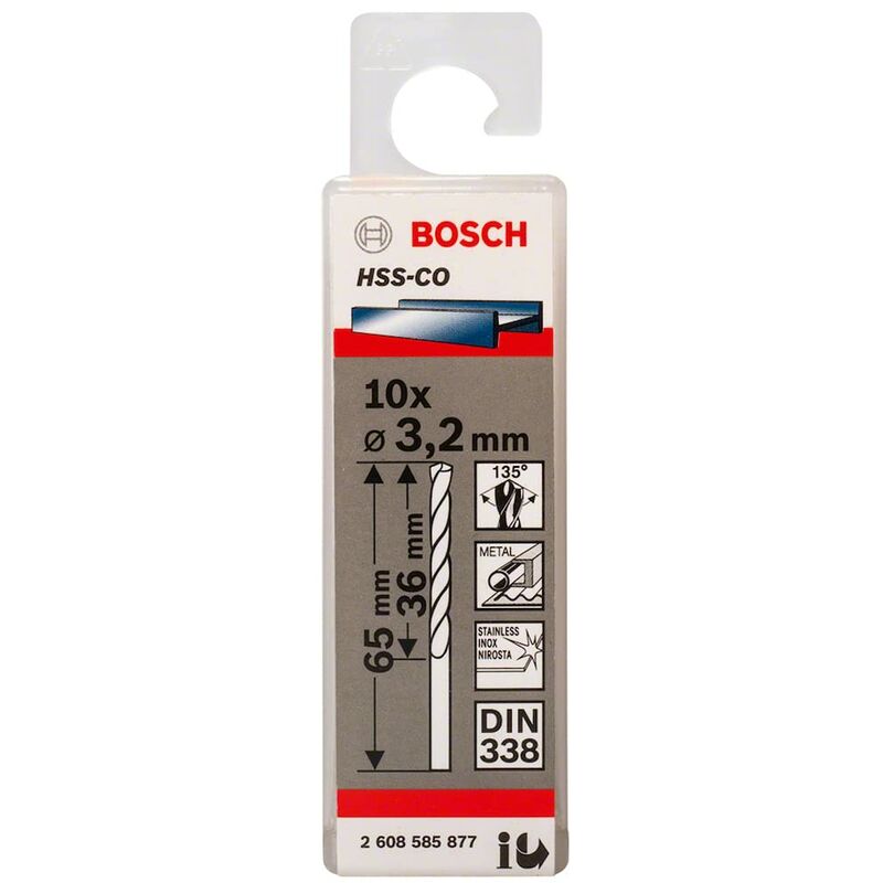 Professionale editing di lega e acciaio unlegiertem, acciaio inossidabile V2 A/in ghisa, ghisa grigia, ghisa acciaio inox V4 A, acidi e hitzebeständigen stählen Diametro x Lunghezza x Lunghezza totale: 3,2 x 36 x 65 mm, di lavoro dopo DIN 338 Per tutti i trapani con attacco rotondo pecora tbohrer Precisione trapano con marcata resistenza al calore e resistenza all' usura per l' utilizzo in trapano sorrisi trapani o pilastro, inoltre eccellente qualità della superficie grazie allo speciale di norma. Utilizzo di universalschneideöl 2607001409 raccomandato Con dender punta elicoidale per trapano tipo N, 135 gradi punte con diametro tolleranza H 8 e affilatura a croce secondo DIN 1412 C, blu cobalto gehalt 5% Originale Bosch Accessori: 10 ore per trapano HSS metallo HSS-Co 3,2 x 36 x, Bosch Codice Articolo: 2608585877, EAN: 3165140521123