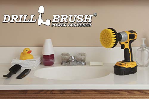Drillbrush, spazzola gialla da trapano, 10 cm, per trapano senza cavi, per pulire tappeti o moquette, setole in nylon di rigidità media, perfetta per le pulizie generali