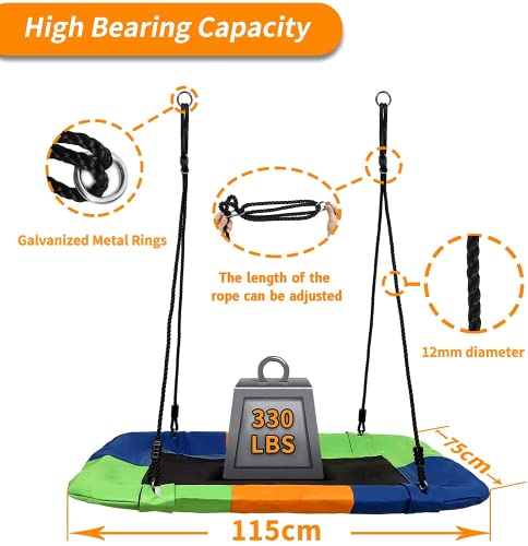 Dripex Altalena da Giardino per Bambini, Nido Altalena Rettagolare per Esterno, Altezza Regolabile, Panno Oxford, per fino a 3 Bimbi, Massimo Carico 150kg, 115 * 75 cm