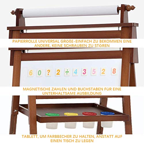 Dripex - Cavalletto artistico per bambini con lavagna magnetica e rotolo di carta (colore: noce)