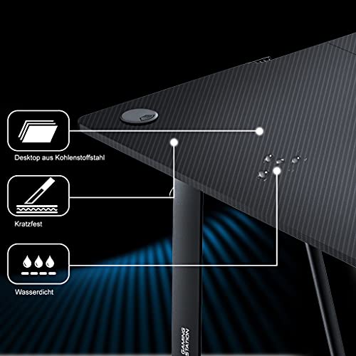 【DESIGN UMANO】 Ci sono 2 fori per cavi e 1 scomparto per la gestione dei cavi sul tavolo per evitare l'ingombro. La scrivania del computer è inoltre dotata di un supporto per bevande, cuffie e un gamepad e un grande tappetino per il mouse. Ciò manterrà la tua tavola in ordine. Puoi avere un'esperienza migliore mentre giochi o lavori.