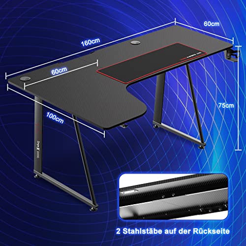 Dripex Scrivania Gaming Ergonomica, Tavolo da Computer a Forma di L, Scrivania Gaming Grande con cestino per bevande e gancio per le cuffie, Adatto per l'ufficio e la Casa 160 x 100 x 75 cm