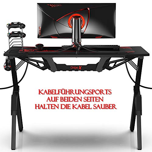 【Desktop da Gioco Ergonomico】Dripex Scrivania gaming per computer con dimensioni desktop 115 cm di lunghezza x 75 cm di larghezza e 60 cm di altezza, offre uno spazio enorme per i monitor di gioco, PC, tastiere da gioco e altri dispositivi di gioco. Progettato con un design di modellazione ergonomico per la comodità delle varie operazioni del giocatore.