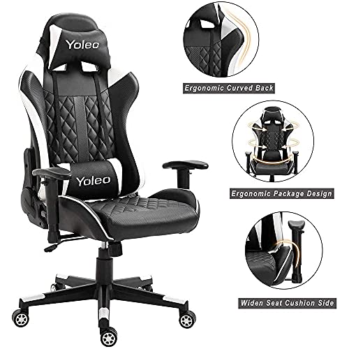 [Ergonomia Migliorata]: Questa sedia da gioco presenta un design snello che abbraccia naturalmente la colonna vertebrale per offrire comfort, mentre il poggiatesta regolabile e l'impareggiabile supporto lombare alleviano lo stress di stare seduti per lunghi periodi di tempo.
