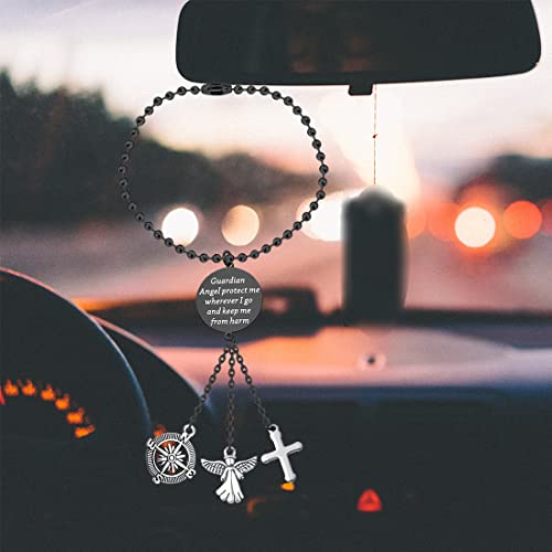Accessori da appendere per specchietti per auto, con messaggio di angelo custode "Angelo custode Protect Me Wherever I Go And Keep Me from harm". Quando andiamo fuori, proteggere la sicurezza delle persone in macchina.