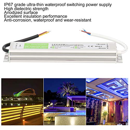 Driver di alimentazione LED impermeabile IP67 da 45 W AC90-250V, trasformatore di alimentazione a commutazione ultrasottile per illuminazione 50/60HZ(DC 12V)