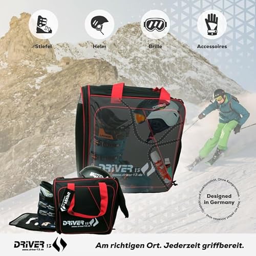 Driver13 ® Zaino per Scarponi da Sci con Scomparto per Casco + Zaino per Scarponi da Sci con Scomparto per Casco per Hard + Scarpone da Snowboard + Interno + Borsa per Scarponi Nero-Rosso