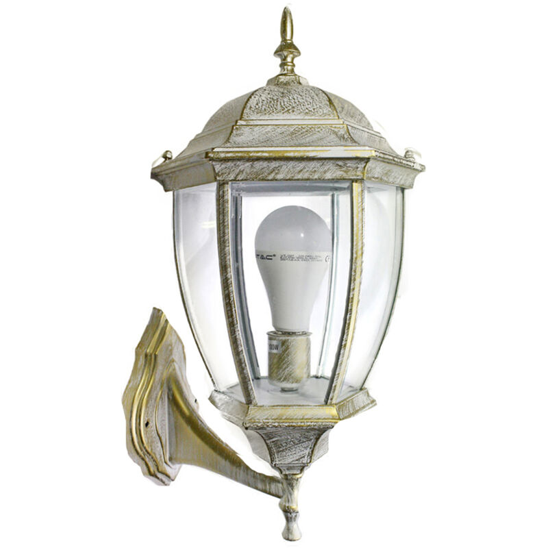 Lanterna Esterno Lampada Vintage 60W Bianco Oro E27 Applique Parete piccola A2-S Il giardino è uno degli spazi della vostra casa che richiede più cura ed attenzione. Per godere e sfruttare a pieno un tale ambiente anche quando le luci del giorno inziano a calare é importante scegliere un buon sistema di illuminazione. N.B. LA LAMPADINA NON É INCLUSA. Caratteristiche tecniche: Tipo: applique Colore: bianco oro Materiale: vetro e lega metallica Dimensione: h 365 mm x l 190 mm circa Attacco lampadina: E27 Max 60W Tensione: 220-240V Grado di impermeabilitá: IP55 Tipo di presa e di alimentazione: elettrico La confezione contiene: Nr. 1 Applique lanterna vintage
