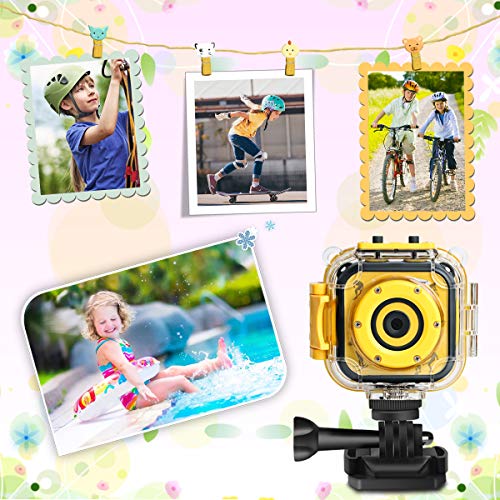 DROGRACE Fotocamera per bambini Fotocamera digitale HD 1080P Videocamera subacquea per sport impermeabile Videocamera per ragazze Ragazzi Compleanno Bambini Prima fotocamera (Giallo)