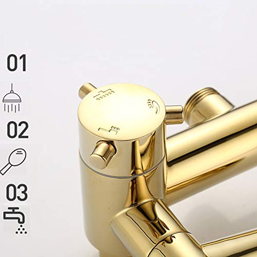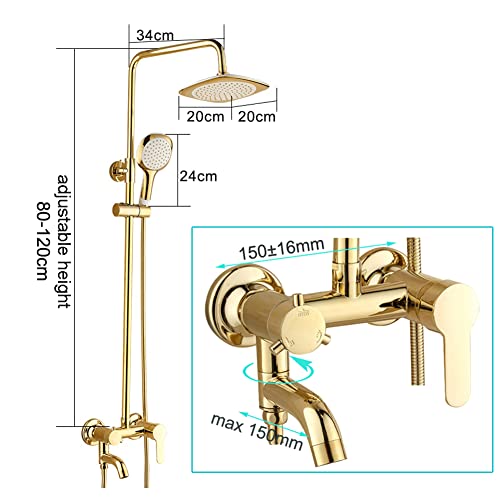 DROMEZ Colonna Doccia D'oro con Soffione e Doccetta, Doccia Soffione Colonna con Miscelatore, Set Doccia Sistema Bagno Moderno Ottone