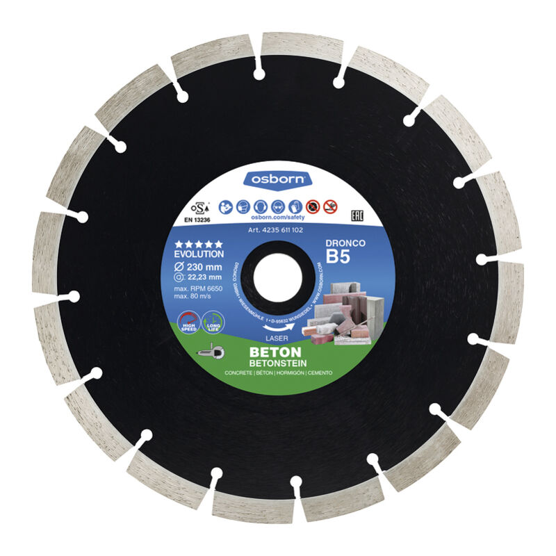 · Disco laser di alta qualità con diamanti aggressivi ad alte prestazioni. · Taglio estremamente veloce e senza sforzo. · Per il professionista esigente su tutti i tipi di calcestruzzo, anche armato. · Non richiede pause di raffreddamento. · Taglio a secco e