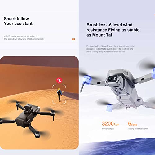 ◆ 【Drone di volo intelligente assistito da GPS】 Non preoccuparti di perdere il drone. Ritorna automaticamente quando la batteria è scarica, il segnale è perso o si preme un tasto per tornare. Inoltre, è molto intelligente volare a tuo piacimento, seguendoti automaticamente, volando lungo un percorso che hai impostato o volando intorno a un punto in cerchio.