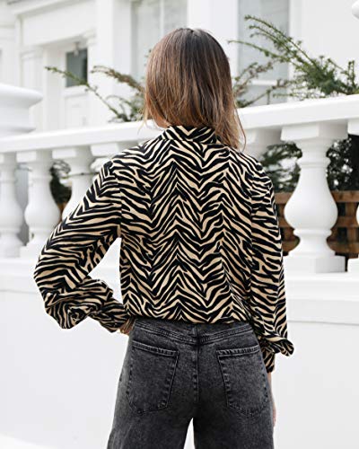 The Drop, Camicia da Donna, a Maniche Lunghe con Abbottonatura Frontale, Stampa Zebrata Nero e Beige, di @wearetwinset, S