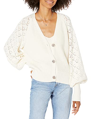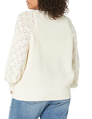 The Drop Divya Cardigan in Maglia a Pointelle con Maniche Lunghe da Donna, Whisper Bianco, 5XL Plus