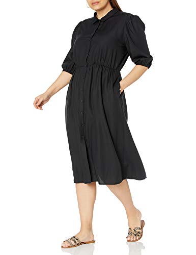 The Drop, Ellen Vestito da Donna, Midi con Apertura sul Retro a Maniche a Palloncino, Nero, XS