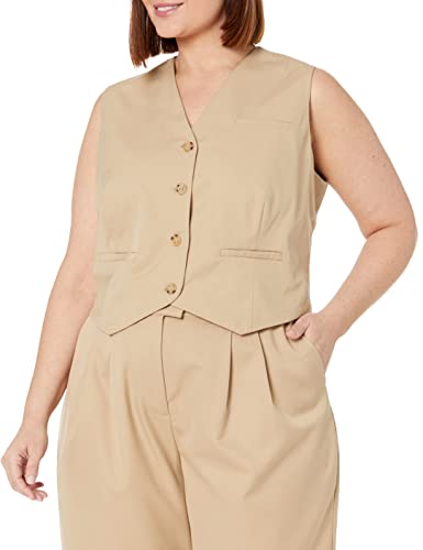 The Drop Sadie Cropped Slim Vest Gilet, Stone, 4X