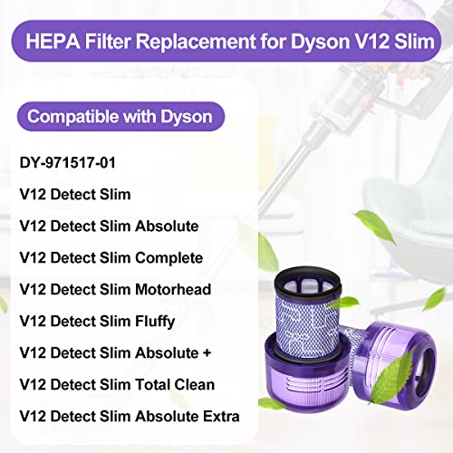 DrRobor Filtri di Ricambio per Dyson V12 Detect Slim, Filtro HEPA per Dyson V12 Slim Absolute Extra/ Total Clean/ Fluffy Aspirapolvere, 971517-01