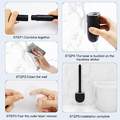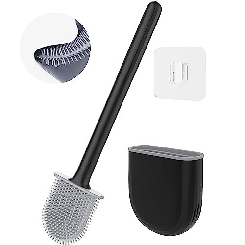 Drucilla Scopino per WC, Scovolino WC in Silicone Morbido, Spazzola WC con di Supporto, Toilet Brush ad Asciugatura Rapida con Base Rimovibile, Anti-gocci, pulizia profonda, Nero