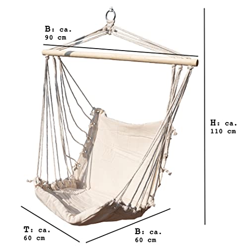 DRULINE - Sedia sospesa in cotone, in tessuto, con imbottitura traspirante e con asta di bambù, 60 x 100 cm, fino a 150 kg, intrecciata, colore: crema