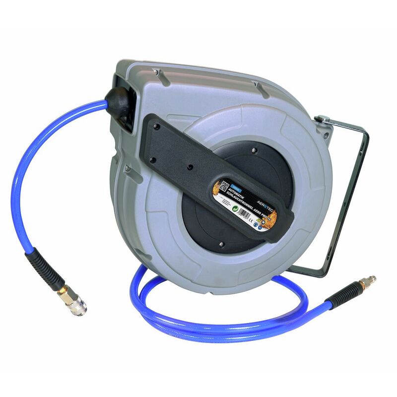 Il tamburo di 16 m in qualità industriale è dotato di un tubo di tessuto PU altamente flessibile. A causa del ritorno automatico, il tubo è comodamente finito. Il blocco impedisce un ritorno automatico indesiderato.