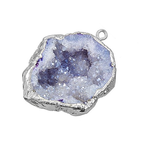 Druzy geode viola contagocce ciondolo placcato argento - 30 mm