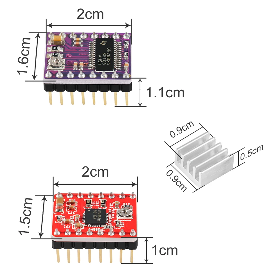 DRV8825 A4988 Stepper Motor Driver With Heatsink 3D Printer Parts Step Stick Carrier Reprap RAMPS 1.4 1.5 1.6 MKS GEN V1.4 Board