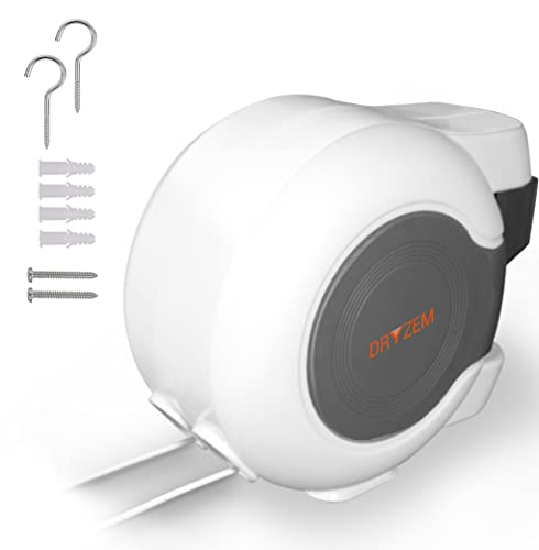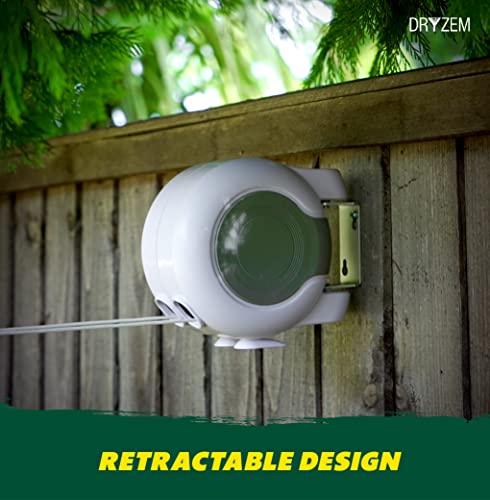 DRYZEM - Linea di Lavaggio Stendibiancheria Retrattile a Due Fili, per Ambienti Interni ed Esterni, 30 m di Filo totali