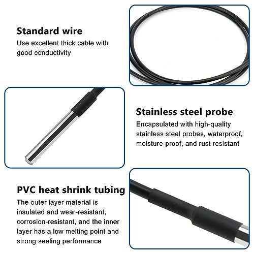 【Custodia in acciaio inossidabile di alta qualità】Il sensore temperatura DS18B20 è alloggiato in una custodia in acciaio inossidabile di alta qualità. La custodia del sensore temperaturagarantisce una tenuta stagna, riduce la latenza e assicura un'elevata precisione di misura. La custodia del sensore temperatura è realizzata in acciaio inossidabile e offre quindi una soluzione robusta e durevole.