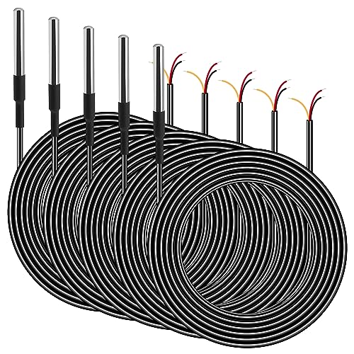 DS18B20 Sensore Temperatura, 5 Pcs Sonda Temperatura Sensore, 5 m Digitale Sensore Temperatura, Sonda Temperatura in Acciaio Inossidabile, Sensore Temperatura Impermeabile, Sensore Sonda Temperatura