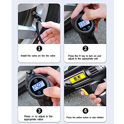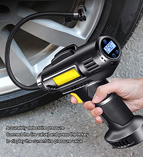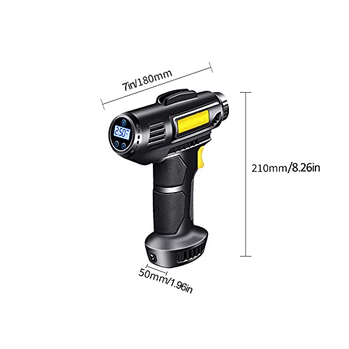 [Gonfiaggio rapido e spegnimento automatico] Il nostro gonfiatore per pneumatici a batteria ha una forte compressione dell'aria fino a 150 PSI, gonfierà la gomma della tua auto in pochi secondi e ti farà risparmiare tempo prezioso. Si spegnerà automaticamente una volta raggiunto il valore di pressione preimpostato. Quindi, non devi più preoccuparti di un gonfiaggio eccessivo o di una bassa pressione dei pneumatici. Nota: non adatto per pneumatici per camion di grandi dimensioni e SUV di grandi d