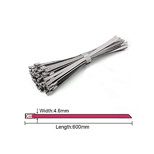 DSFHKUYB Fascette per Cavi in Acciaio Inossidabile Premium da 100 Pezzi 600 mm, Fascette per Cavi in Acciaio Inossidabile SS304, Fascette per Cavi in Metallo,4.6x600mm