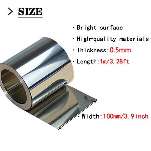 DSFHKUYB 0,3 Millimetri di Spessore in Argento 304 in Acciaio Inossidabile Belle lamiera Foil 100mmx1m per apparecchiature elettroniche - 1pcs,0.5mm x 100mm x 1000mm