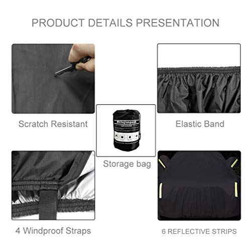 【DESIGN ANTIVENTO】Cinghia antivento posizionata su 4 ruote per proteggere il telo della tua auto dal vento che soffia via nelle giornate ventose. Deve essere installato solo una volta e poi serrato direttamente. L'orlo elastico mantiene saldamente il telo copriauto sulla tua auto. Inoltre, la lavorazione a doppia cucitura rende la copertura più durevole.