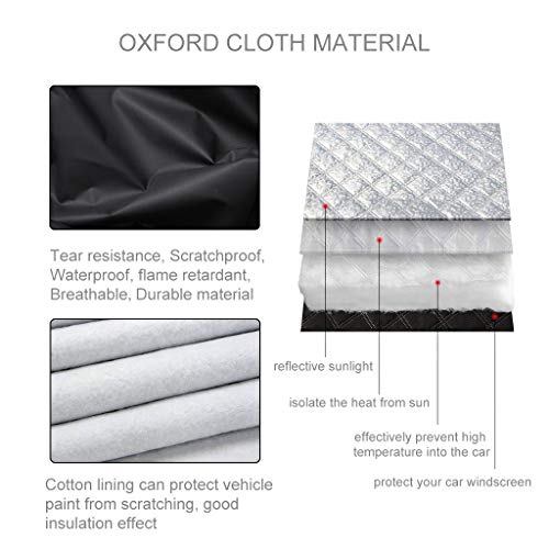 【MULTIFUNZIONE】Questa copertura per auto è realizzata in tessuto Oxford traspirante e foderata in cotone. Queste coperture per auto per tutte le stagioni possono proteggere efficacemente il tuo veicolo da pioggia, raggi UV dannosi, detriti, polvere, neve, gelo, inquinanti industriali e escrementi di uccelli. È perfetto per uso esterno e interno, estivo e invernale.