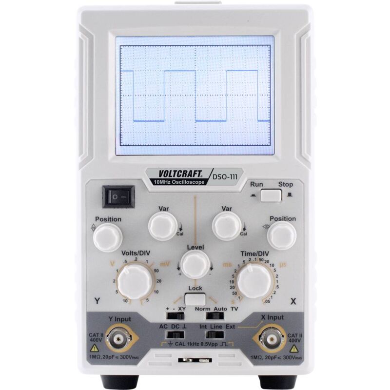 Dettagli tecnici Ampiezza di banda 10 MHz Calibrato di fabbrica senza certificato Canali (LOV - solo per titolo) 1 canale Categoria di misura (LOV) CAT II 400 V Dimensione del prodotto, larghezza 192 mm Dimensione del prodotto, lunghezza 117 mm Dimensione monitor 9.398 cm Dimensioni prodotto Altezza 288 mm Frequenza di campionamento/canale 100 MSa/s Imballaggio privo di plastica Imballaggio privo di plastica Impedenza di ingresso 1 MΩ ±2% Peso 1.8 kg Oscilloscopio digitale DSO-111 Elevata velocità di aggiornamento L'oscilloscopio digitale DSO-111 si distingue soprattutto per l'elevata velocità di aggiornamento di 130.000 wfms/s e per il basso consumo energetico di meno di 15 watt. Il canale disponibile funziona con una larghezza di banda di 10 MHz e la frequenza di campionamento è di massimo 100 MS/s. Per risultati di misurazione più precisi, rappresentati su uno schermo LCD a colori da 9,40 cm, il DSO-111 Trigger Lock supporta. Tutto quello che serve Oltre all'oscilloscopio si