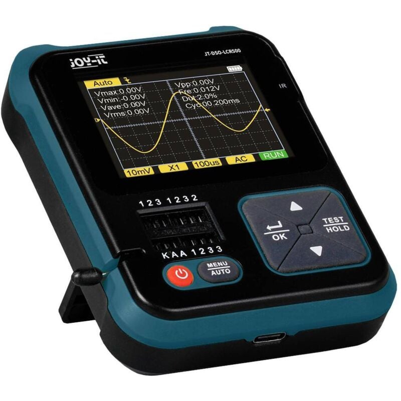 Dettagli tecnici Alimentatori VDE Alimentato a batteria ricaricabile, USB Calibrato di fabbrica senza certificato Dimensione del prodotto, larghezza 85 mm Dimensioni (L x A) 85 mm x 103 mm Dimensioni prodotto Altezza 103 mm Frequenza (Max.) 100 kHz Tipo prodotto Oscilloscopio SPECIFICHE DELL'OSCILLOSCOPIO Frequenza di campionamento: 10 MS/s. Larghezza di banda analogica: Da 0 a 500 kHz • Resistenza d'ingresso: 1 MΩ Accoppiamento: CA/CC Intervallo di tensione di prova 1:1: 80Vpp (- 40 V - 40 V) 10:1: 800Vpp (- 400 V - 400 V) Sensibilità verticale: 10 mV/Div - 10 V/Div Intervallo di tempo orizzontale: 10 μs - 10 s. Modalità trigger automatica, normale, singola Tipo di trigger fronte discendente, fronte ascendente Componenti misurabili HFE maggiore di 10, HFE minore di 600 Fattore di guadagno (HFE), Tensione emettitore base (UBE) Corrente di sbarramento collettore-emettitore (Iceo, ICES), Caduta di tensione di passaggio del diodo di protezione (UF) Diodi Caduta di tensione di passaggio