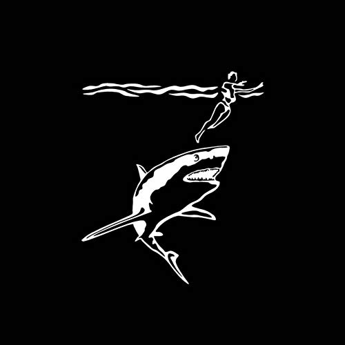 DSRLO Adesivo per Auto 15,5 cm * 18 cm Grande squalo Bianco inseguendo Nuotatore personalità Vinile Adesivo Adesivo Nero Argento