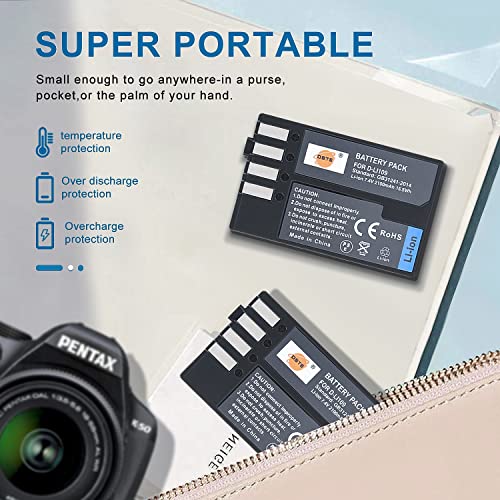 DSTE 2pcs D-LI109 Li-ion Batteria compatibile con Pentax K-R K-30 K-50 K-500 K-2 K-S2 K-S1