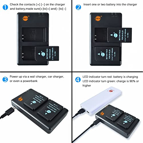 DSTE 2PCS EN-EL20 EN-EL20A (1900mAh/7.4V) Batteria Caricatore Compatibile per Nikon 1 J1, Nikon 1 J2, Nikon 1 J3, Nikon 1 S1, Nikon 1 V3