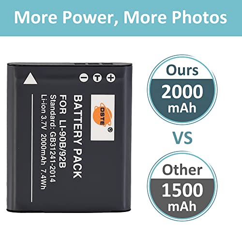DSTE 2pcs LI-90B LI-92B Batteria compatibile con Olympus SH-1, SH-50, iHS SH-60, SP-100, Tough TG-1, TG-2, TG-3, TG-6