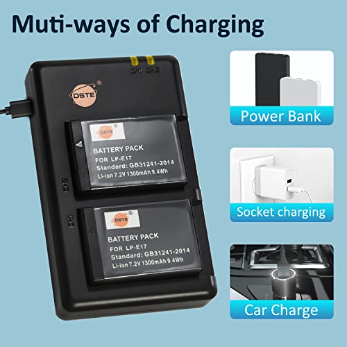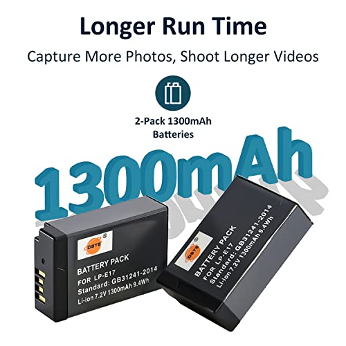 DSTE 2PCS LP-E17 (1300mAh/7.2V) Batteria Caricatore Compatibile per Canon EOS M3 M5 750D 8000D 9000D Kiss X8i Rebel T6i T6s EOS Rebel SL3 (EOS 250D/EOS Kiss X10) EOS M6 Mark II