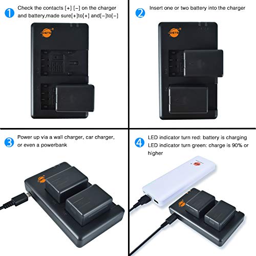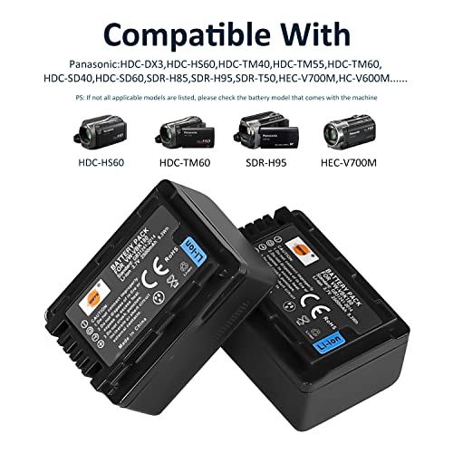 DSTE 2PCS VW-VBK180 (2500mAh/3.7V) Batteria Caricatore Compatibile per Panasonic HC-V100M,HC-V500,HC-V500M,HC-V700,HC-V700M,HDC-HS60,HDC-HS80,HDC-SD40,HDC-SD60,HDC-SD80,HDC-SD90
