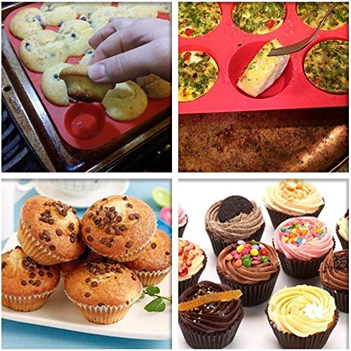 DSTong Silicone Vassoi per Muffin 24 Tazze And 1*spatola, Stampo in Silicone per Mini Muffin o Biscotti (24Cavity/1pack-red)