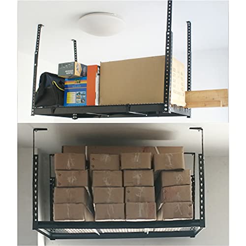 DSVONAUS Scaffalature per Garage Sospese, Scaffali Regolabili per Montaggio A Soffitto, Pensili per Garage, capacità di Peso 150 kg, 115 × 70 Cm, Nero