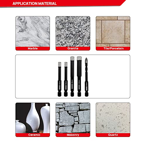 DT-DIATOOL Set di punte per trapano diamantate per piastrelle da 1/4" 5/16" 3/8" per perforazione a secco in porcellana, ceramica, granito, marmo per muratura, pietra (6/6/6/8/10 mm, confezione da 5)