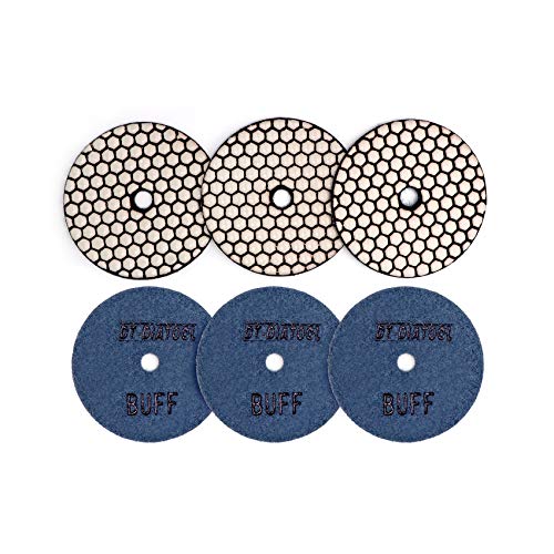 DT-DIATOOL Tamponi Diamantati a Secco per Lucidatura 100mm 6 Pezzi Bianco Buff (quasi # 10000) per Granito Marmo Ceramica
