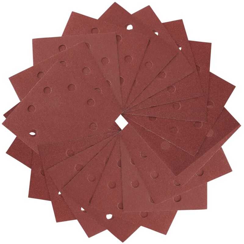 Descrizione 1/4 foglio di carta vetrata perforata a fissaggio rapido 115x115 mm, grana 120, per la levigatura a secco di legno e vernice Legante adesivo resinato resistente al calore, ideale per la levigatura meccanica Il rivestimento in stearato riduce