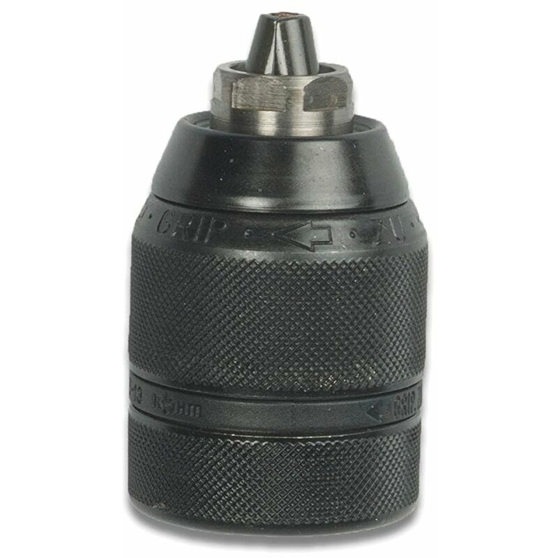 Mandrino autoserrante in acciaio con inserti in carburo nelle ganasce Dati Tecnici: Capacita' di serraggio 1,5-13 mm Attacco femmina filettato 1/2 x 20 UNF 2 Ghiere in metallo Con inserti in metallo duro nelle ganasce Foro passante per M5 o M6 vite di sicurezza