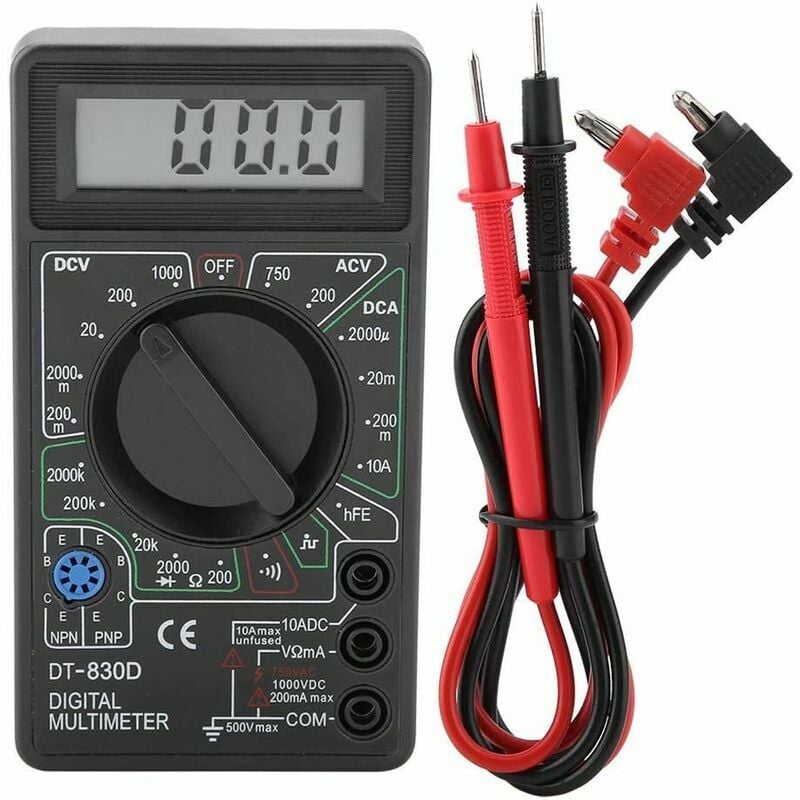6. Il design tascabile lo rende facile da trasportare. Specifiche: Condizione: 100% nuovo di zecca - Modello: DT830D - Materiale: ABS - Colore: nero e LCD Dimensioni: 49 x 16 mm - Display massimo: 1999 Test diodi: sì Test transistor Test: Sì Test cicalino continuo: Sì Garanzia di sicurezza: protezione da sovraccarico > Uscita onda quadra: Sì Alimentazione: 1 x 1 batteria 9V 6F22 (non inclusa)