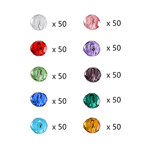 La confezione include: La confezione contiene 1 scatola di perline di vetro, per un totale di 500 pezzi, 10 colori, 50 perle di vetro per ogni colore.
